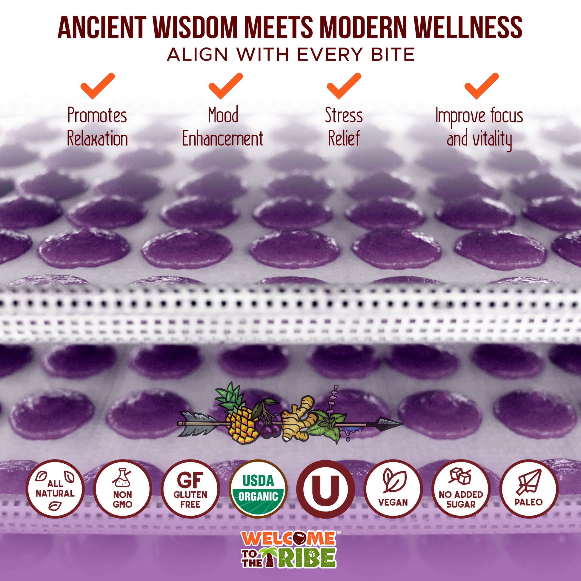 Step into a serene sanctuary with every bite of our ALIGN fruit chews. Perfectly crafted to promote balance and calm, these delightful chews combine the tropical zest of pineapple, the warm spice of ginger, and the antioxidant-rich maqui berry for a holistic wellness experience that nurtures both mind and body.